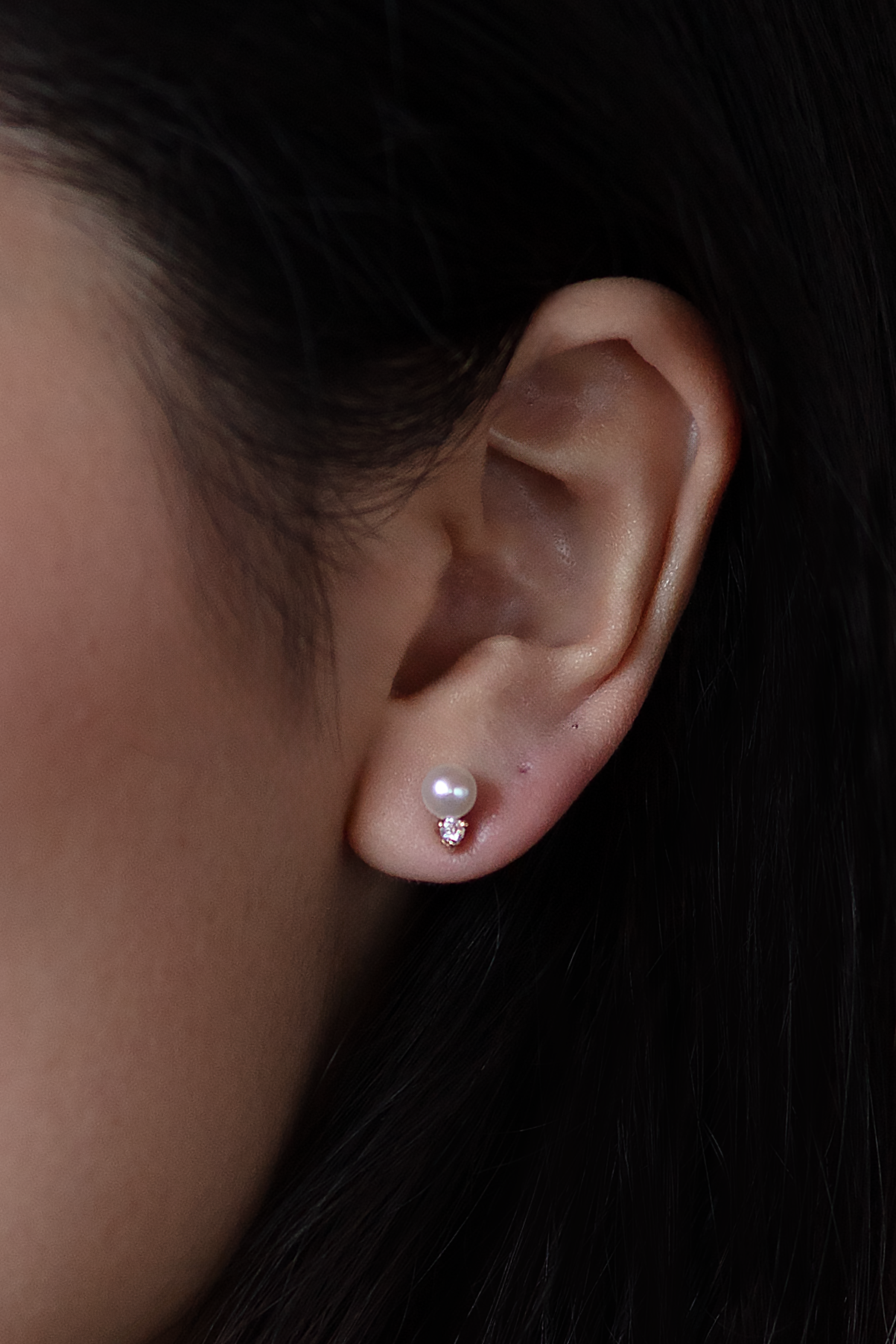 Meet Nicola - the modern heirloom. An ode to timeless elegance, she captures the grace of your grandmother’s pearls, reimagined with glinting of diamonds. The 5mm Pearl Earring pairs seamlessly with the Mini Diamond Earring Enhancer for a refined, luminous finish — effortless yet enduring.